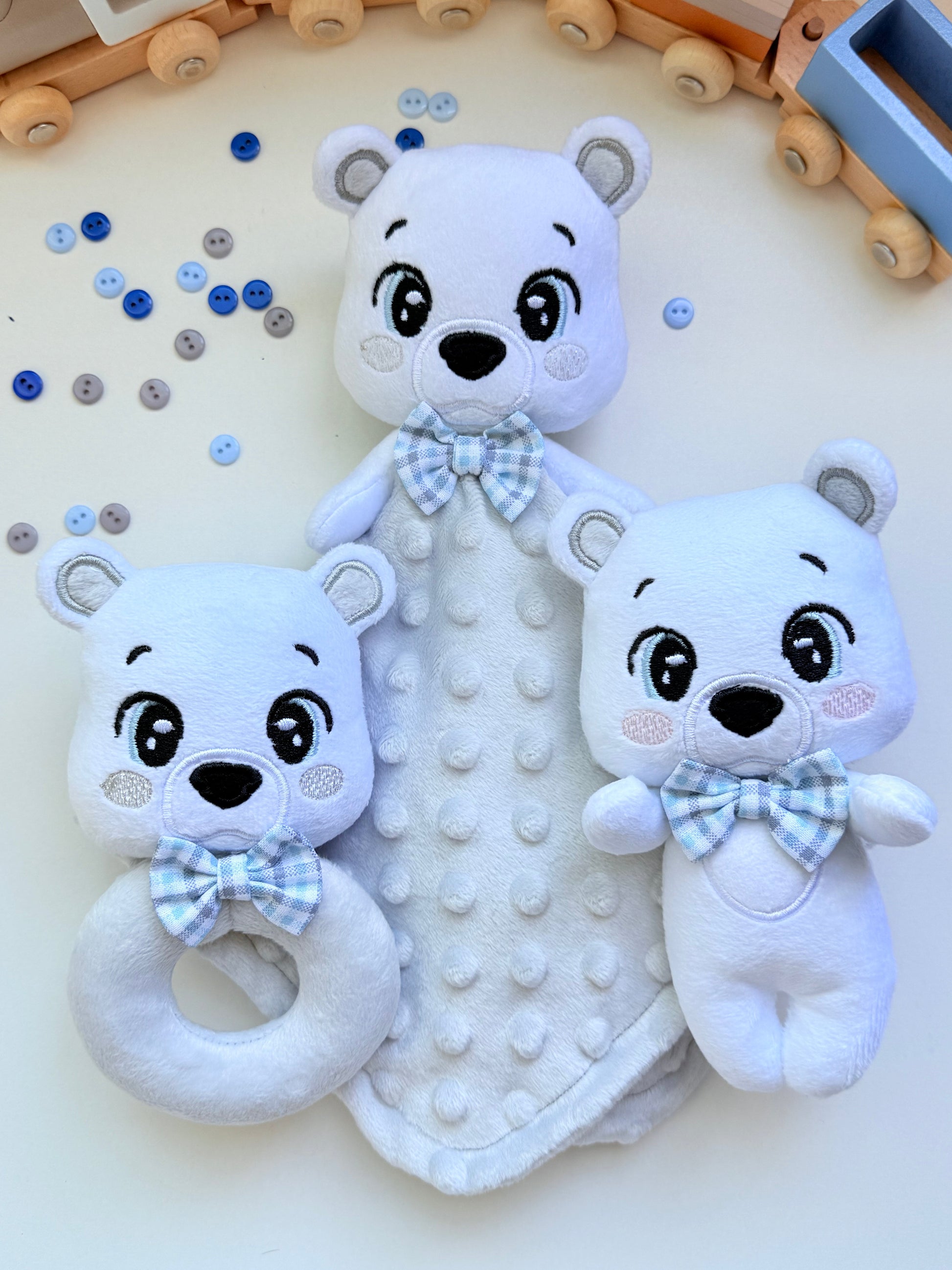 Este adorable kit de 3 piezas está cuidadosamente diseñado para apoyar la comodidad, la seguridad y el desarrollo temprano de su bebé, todo envuelto en encantadores diseños inspirados en animales.